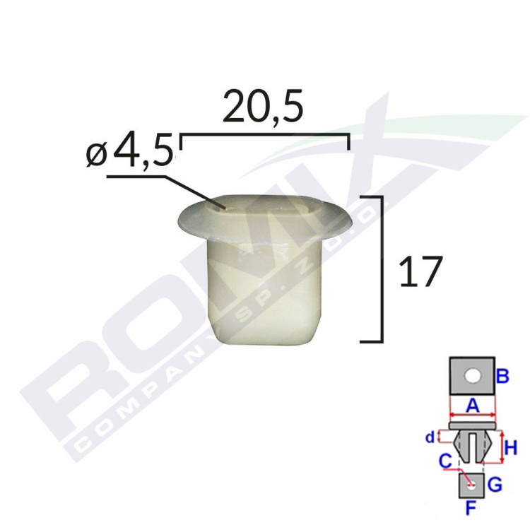 A 20,5 B 13,2 C 1,8 F 13,5 G 7,2 H 17 na wkręt 4,5