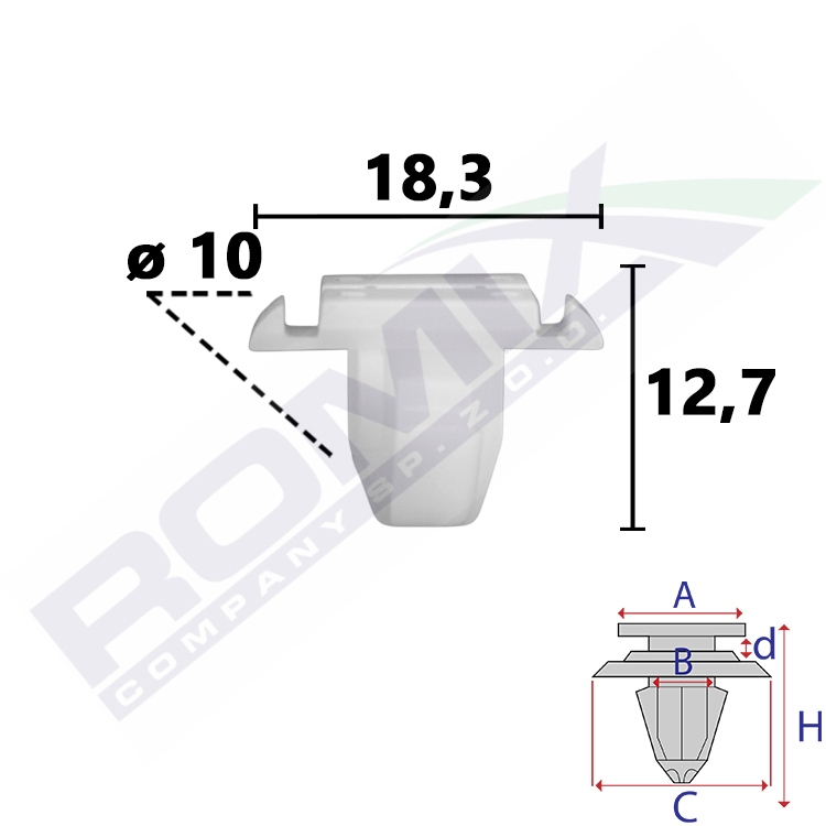 Dimensions: A 18,3x9 B 10 H 12,7 w otwór ø 10