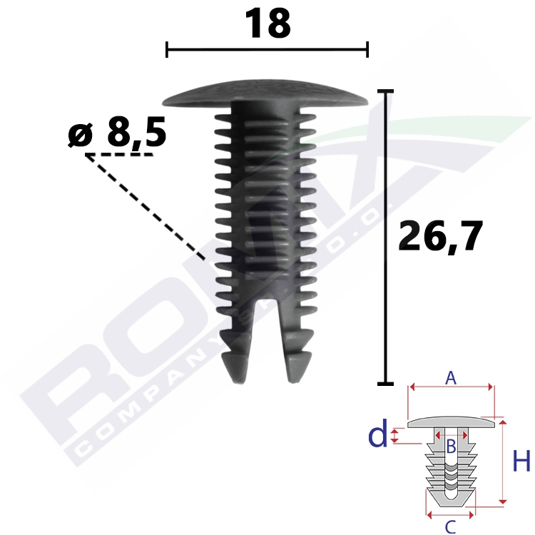 A 18 B 6 C 9 d 1,7 H 26,7 w otwór ø 8,5