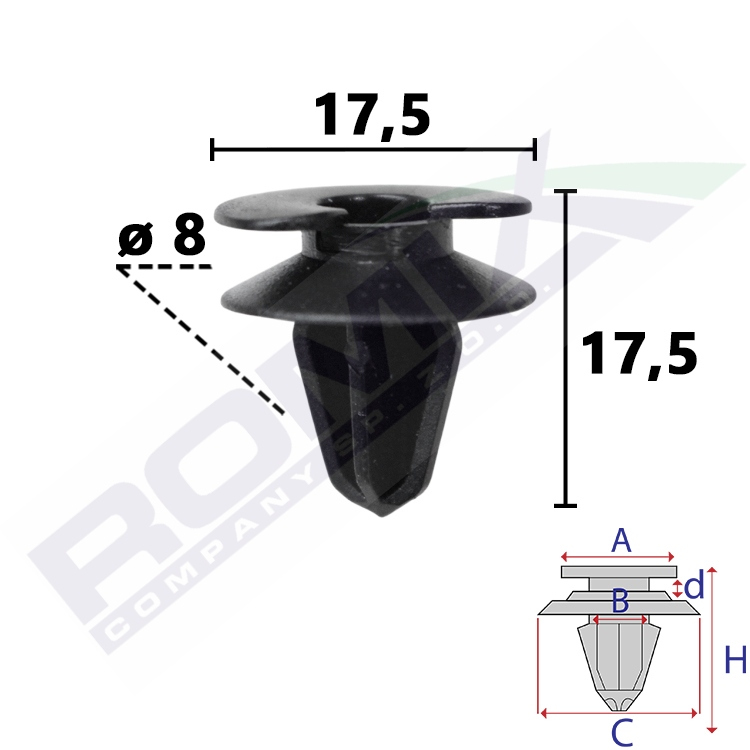 A 17 B 8 C 17,5 d 2,9 H 17,5 w otwór ø 8