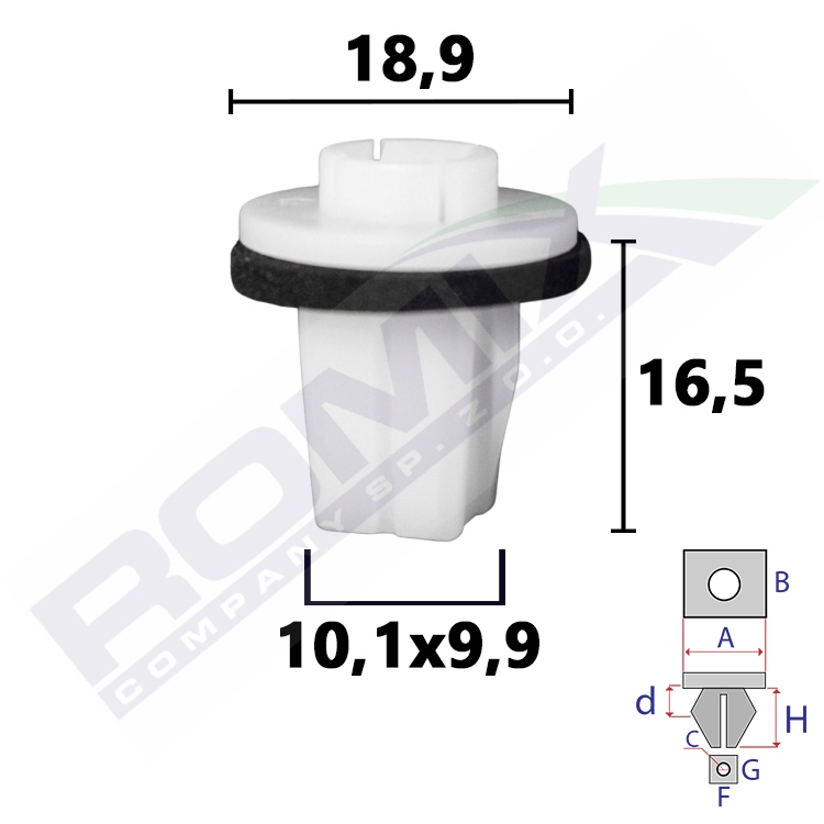 Wymiary: A 18,9 C 4,1 F 10,1 G 9,9 H 16,5